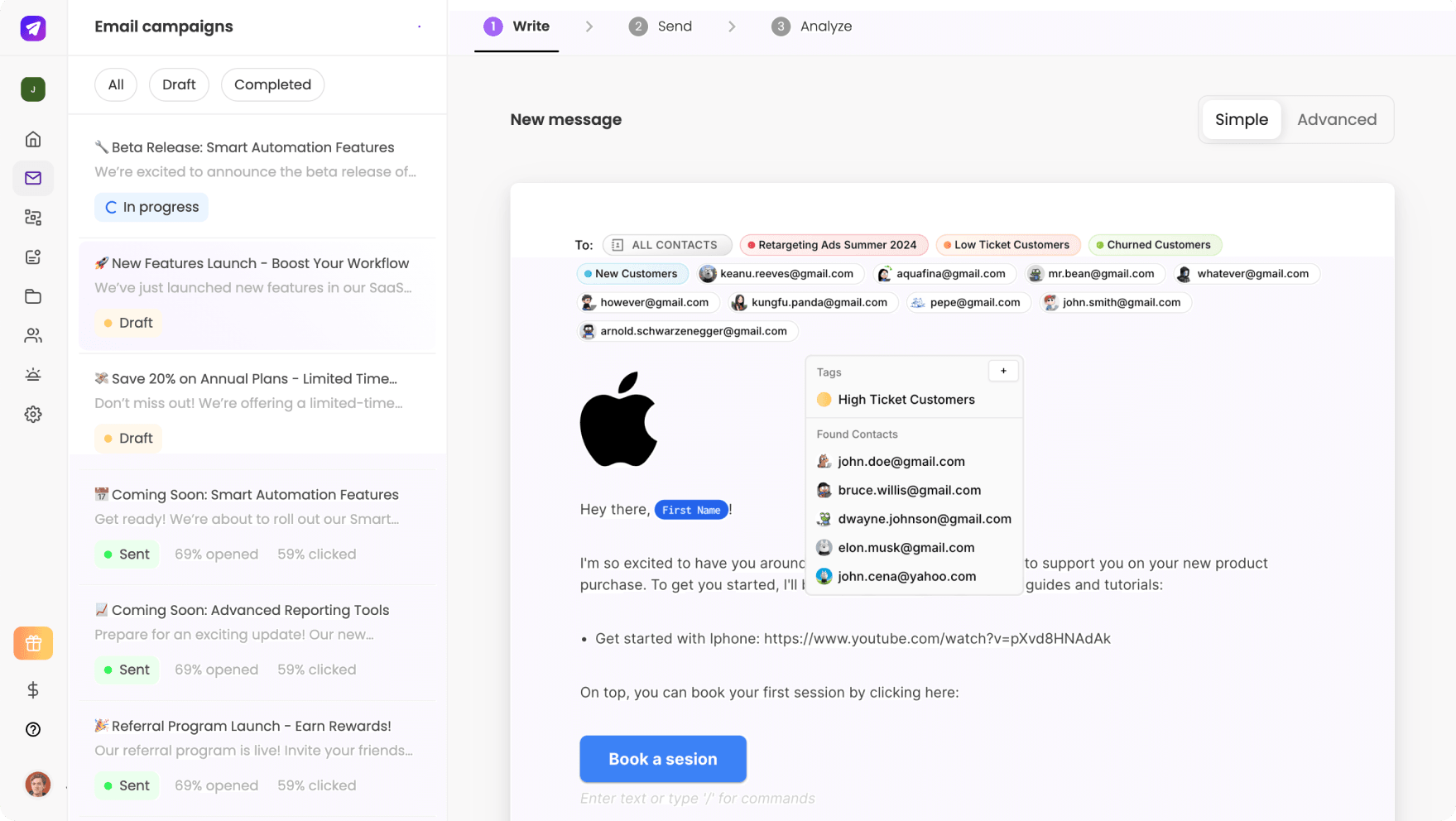 SMASHSEND is an AI-powered email marketing platform specialized in helping small and medium-sized businesses grow through effective campaigns. The platform supports both marketing and transactional emails, and it offers a user-friendly, Notion-inspired editor for crafting professional emails without coding. Features include AI-assisted writing, smart segmentation, automation workflows, and seamless integrations via webhooks.